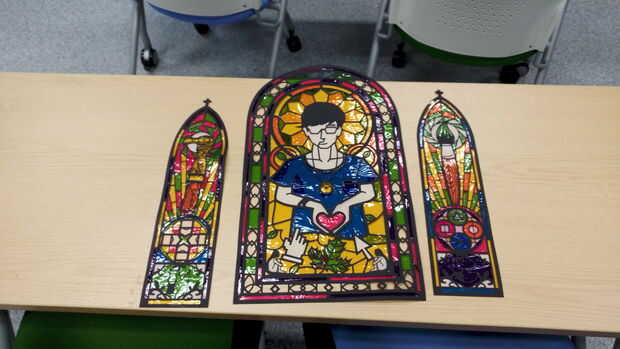 siente libre para referencia de vidrio existente de la iglesia local o en línea! 1 truco de más es utilizar colores más oscuros en el borde y el color más claro en el centro