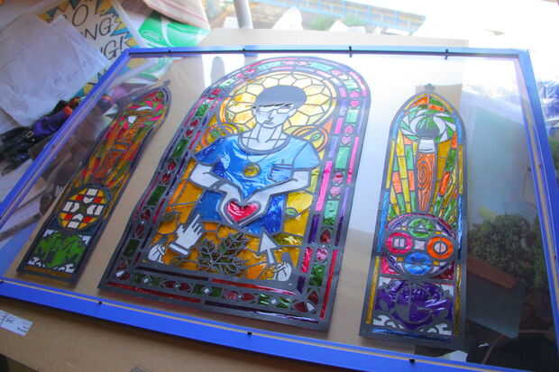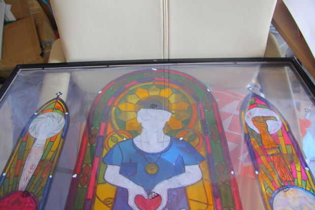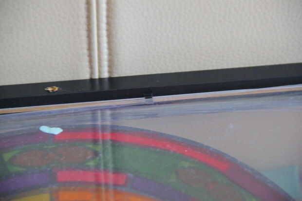 al reemplazar el framebacking con el acrílico, me pareció un poco pesado para el marco y deforme. Saqué una línea de pesca apretado en la parte posterior para sostener el marco en su forma.
