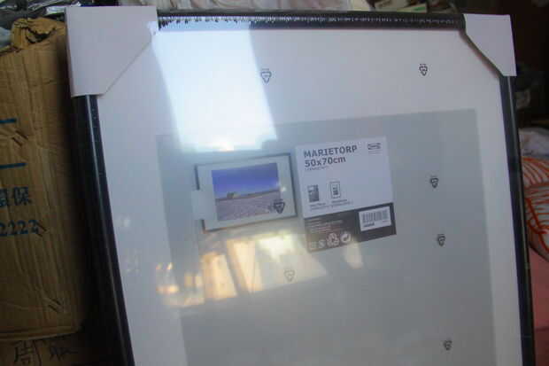 compré un NYTTJA 50x70cm y un MARIETORP 50 x70cm en IKEA. ambos tienen placa de acrílico transparente de la misma dimensión. así podemos sandwich la obra entre el tablero de acrílico im el mismo fotograma! deje la luz de fondo. No es sensible de la parte delantera y hacer el truco!