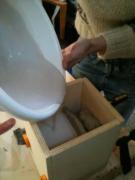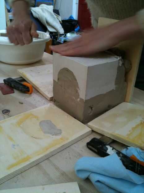 Las tazas impresas 3D se utilizaron para crear los moldes de yeso para el colado de la porcelana. El molde fue creado con arcilla y la madera como se muestra en las imágenes de arriba.