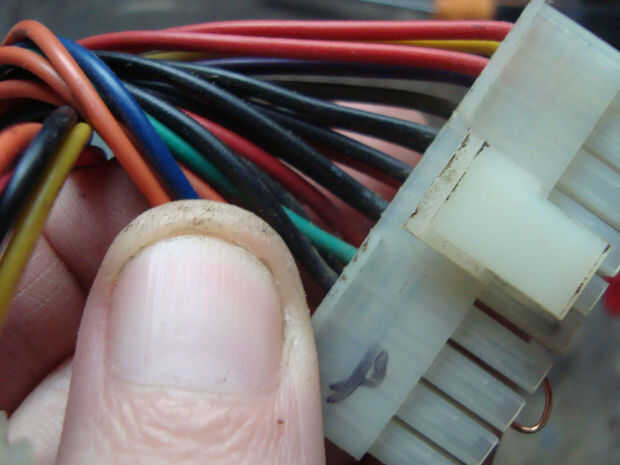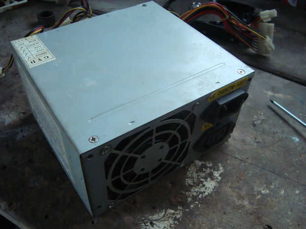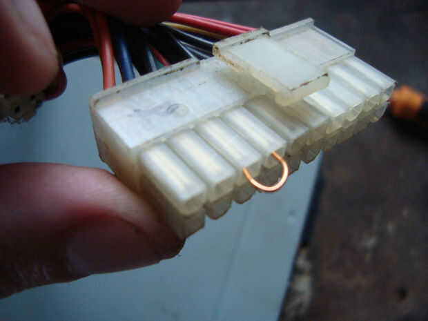 Ahora saludando una fuente atx de pc, solo debemos enchufarla y con un pequeño alambre hacer un punte entre el cable verde y el negro