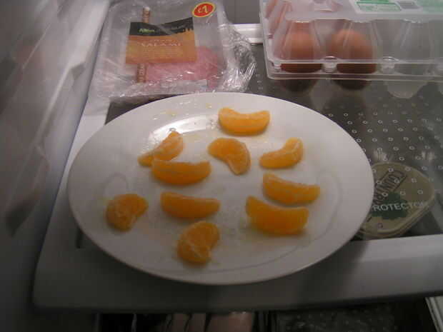Ahora Coloque sus bocados en el refrigerador. Si desea comer sus bocadillos pronto, te sugiero que mantenerlos en la nevera durante 10 minutos, mejor servido frío. Cualquier exceso de azúcar y el jugo aparecerá en la placa. Consumir dentro de 24hours.