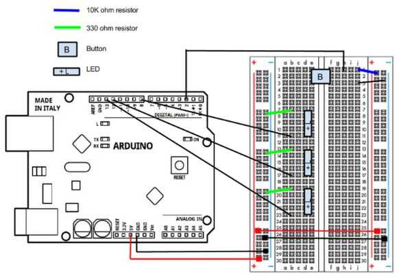 -Conecte un resistor de 10K al botón y también Conecte un cable del pin 2 a la misma fila que la resistencia.