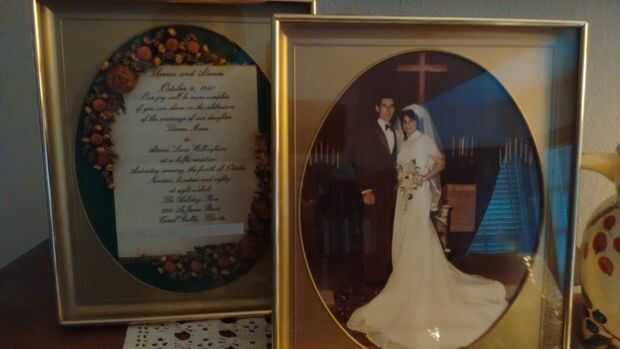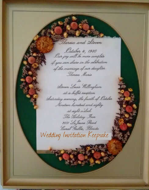 Hace muchos años - 35 para ser exactos - mi co creador y yo nos casamos. Hicimos una casa, tres hijos, algunos libros y montón de otras cosas sobre los años. Uno de mis recuerdos favoritos desde el momento que decidimos hacer las cosas juntos por el resto de nuestras vidas, es este hermoso recuerdo enmarcado de la invitación de la boda mandamos mi primo. En lugar de lanzar después el feliz acontecimiento, ella cuidadosamente decorado había lo había enmarcado, caja para arriba y había enviado a nosotros como regalo de bodas!