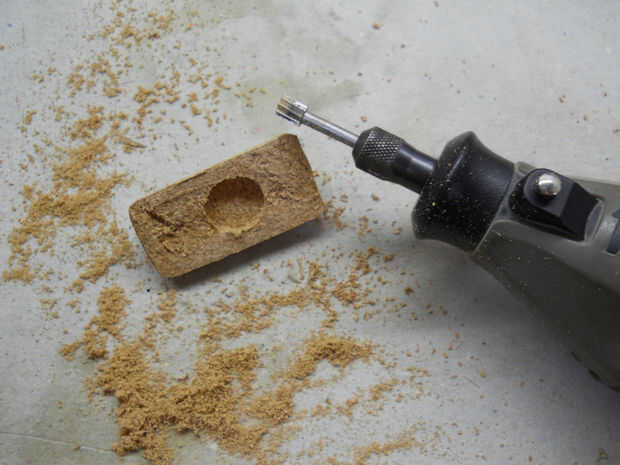Utilizando la dremel con una herramienta de router, abrir un espacio para el imán. De vez en cuando compruebe si el imán se ajusta bien en el agujero.