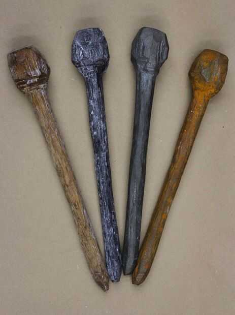 Mis esculturas recuerdos de sangre & fuego surgieron este proyecto. Regresé a casa a Chicago con una de estas clavijas había tallado y transformado en réplicas de hierro y luego envió a los del proyecto como un recuerdo a nuestro trabajo y la permanencia de la amistad. El hierro que fluye en la sangre y que las clavijas son de se forjó dentro de las mismas estrellas. Los objetos toman nuevos significados y nuevas propiedades como testamento unburnable las historias que estamos reconociendo y las estructuras de soporte de las relaciones humanas.