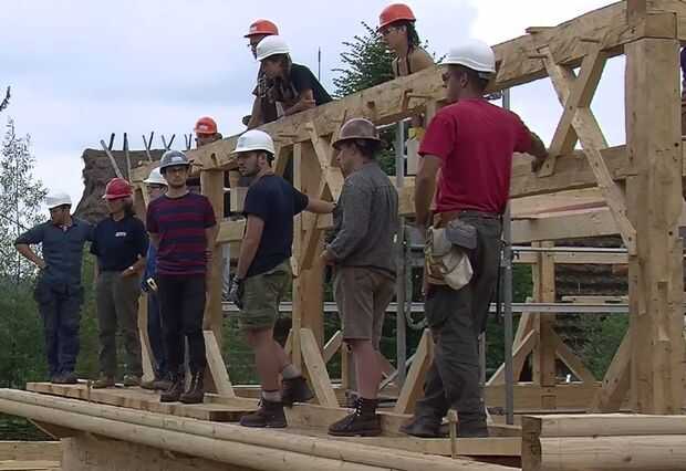 La estructura que fue construida completamente de pino blanco compuesto por miles de clavijas de madera que fueron martilladas en las vigas para mantener la estructura estable además de las juntas de cola de Milano.