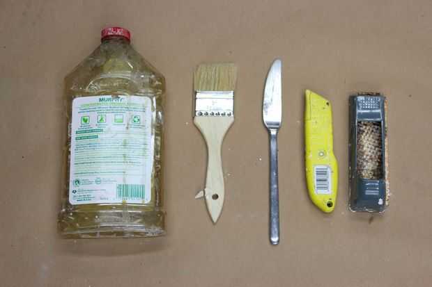 -Un cepillo para difundir comunicado sobre objeto, un cuchillo o herramienta para refinar molde de escultura (escofina es opcional pero es buena para aplanar superficies irregulares)