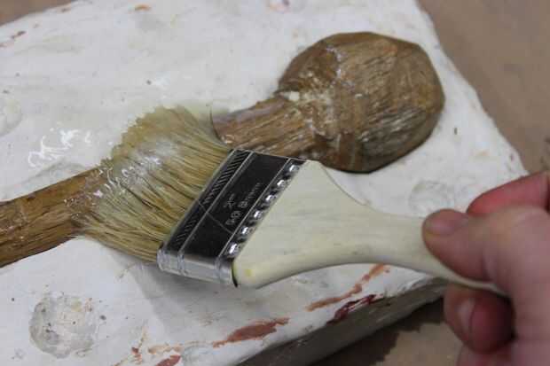 1) después de yeso ha endurecido y enfriado sacar molde molde de hacer caja (se puede desmontar la caja si es atornillada o afianzado con abrazadera juntos o pase un cuchillo alrededor del perímetro de la escayola para aflojar por lo que se sale de la caja con su arcilla y objeto.