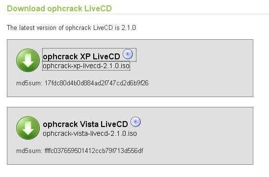 el sitio web de ophcrack y en la Página principal Presione descargar Ophcrack Live CD, como se muestra en las fotos. A continuación, puedes elegir entre uno que recopila contraseñas XP o Vista contraseñas. Elija el que sea apropiado y luego guardarlo en su computadora. Es aproximadamente de 450 MB, por lo que podría tomar un tiempo para descargar (aproximadamente 45 minutos y 1,5 M). Cuando se hace, te mueves en quema.