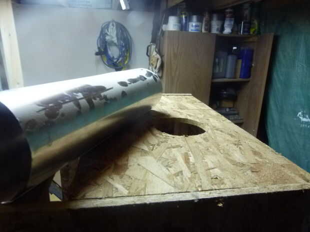 Un agujero se corta en el lado de la caja (no muy quisquilloso, que sólo utilicé mi rompecabezas.) Un pedazo de tubo de ventilación la secadora se coloca en el agujero. Se trata de donde se coloque la secadora. Este tubo puede ir parcialmente en la caja, resulta muy molesto, pero no puede pero en el otro extremo de la caja.