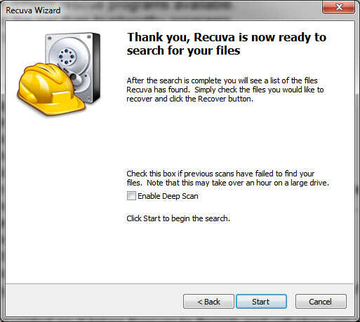 Marcando la casilla de "Habilitar Deep Scan" debe ser utilizada si la exploración normal era incapaz de encontrar tus archivos o si usted ya sabe que los datos se perdió debido a problemas de energía o retirar durante una lectura / escritura acceso. De lo contrario usted solo perder mucho tiempo con esta opción. Haga clic en "Start" realiza la exploración de archivos que el programa puede recuperar: