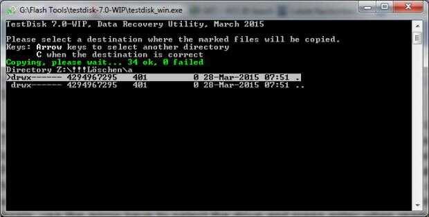 Ahora utilizas las teclas de flecha para desplazarse a una unidad diferente y carpeta para restaurar los archivos seleccionados y la gran "C" otra vez para escribir los archivos en la carpeta de destino.