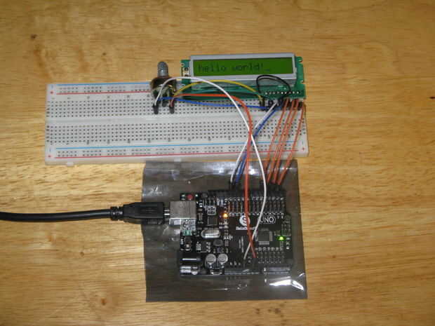 Este bosquejo imprime "Hello World!" a 16 x 1 LCD.