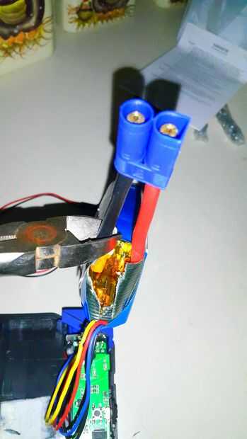 Mi mano alicates cortar el conector corriente alta y los 4 cables de la placa del cargador.