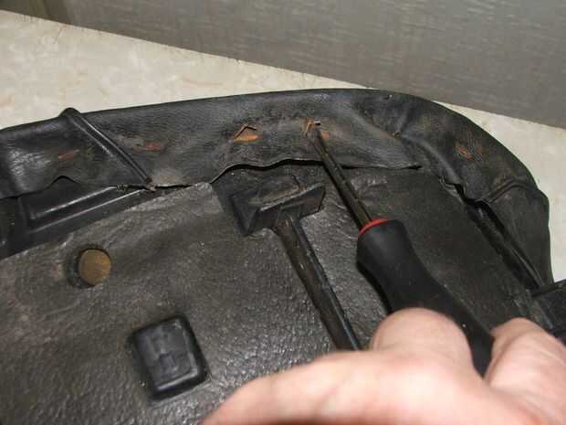 Usando el destornillador y los alicates quitar el viejo las grapas de la cubierta de asiento. Esto puede entonces ser pelado...