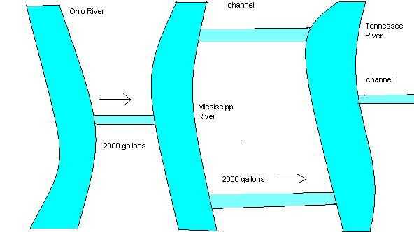 Por supuesto hay mucho no se muestra o cubiertos aquí. Cuando usted transmita electricidad hay pérdidas de resistencia en el cable, longitud del alambre etc.. En el agua tienes lo mismo incluyendo el tiempo, el tamaño y la capacidad de la corriente del canal como los viajes de agua que bomba 2000 galones que tenga que esperar para comenzar a retirar el 2000 gal basa en establecer algunas normas para flujo de agua. También es el tamaño de las bombas, rendimiento, velocidad, etc.. En la siguiente foto también notará que las áreas de inundación probablemente están comenzando hasta río así para quitar el agua esclusas más grandes de bombas/canales/y de transmisión sería en ese extremo y pequeñas ramas y afluentes se distribuyen a otras partes del país. Las ramas más pequeñas con menor capacidad por lo que pequeños embalses o piletas de recepción. Una vez que se alcanza la capacidad de otras estaciones tendrán que satisfacer la necesidad.