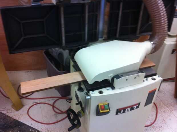 En primer lugar, he utilizado la Machimbradora/Cepilladora TECHSHOP para obtener las tablas abajo tamaño podía trabajar con. Quería tener un viejo aparador mirando, así que sólo planean de un lado y dejó la suciedad/erosión en el otro. Estos iban a ser utilizado para los frentes de cajón, así que les hice tan cuadradas como sea posible para que cara-pegamento ellos juntos.
