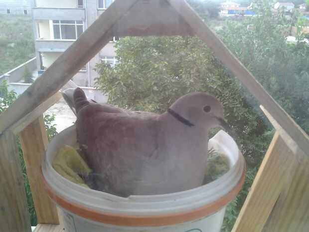 El pájaro en la foto viene cada año a este cubo que usé como pote de flor y pájaro pone un huevo en este cubo, pero la luz del sol y la lluvia perturban las aves bebé, entonces me decidí a hacer esta casa del pájaro. Esta casa de ahorro de luz del sol y la lluvia es muy cómodo para ellos. Creo que son muy felices ahora :)