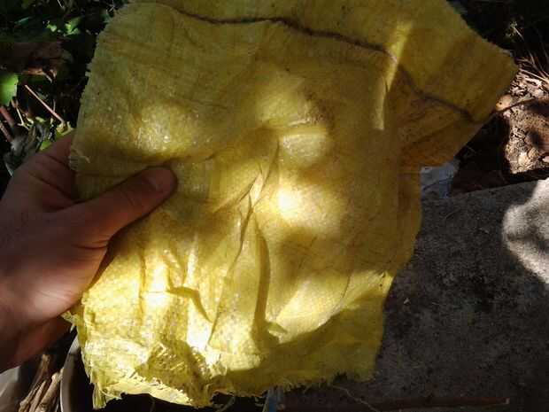 Que en el fondo un pedazo de jarra bolsa para prevenir contacto con dirth...
