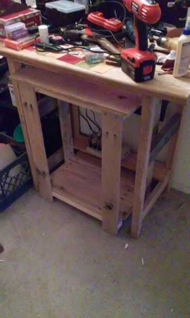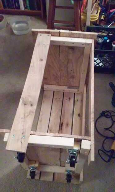 Así que tenía una tapa con 2" carril debajo de él y una parte inferior con un carril de 2" y algunas ruedas debajo de él y puso de lado y marcado hacia fuera y algunos agujeros en ellas perforados. (Si haces eso a las 4 esquinas se puede colocar arriba y utilizan por primera vez tener un lugar para trabajar para terminar el resto de este proyecto)