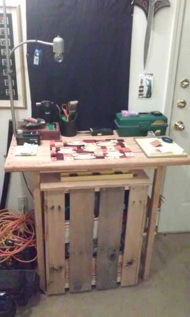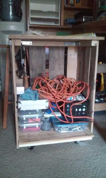 Una vez todos junto usted puede darle un buen acabado lijar si es necesario. Aquí está una foto de él instalado debajo de la mesa de trabajo y el interior. Creo que tal vez una pequeña repisa en la parte superior y unos ganchos me deberían dar bastante buen acceso a todo.