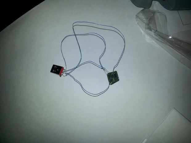 Primero soldar 4 cables para los 4 conductores en el conector USB. Asegúrese de que los cables sean lo suficientemente largos para dar suficiente espacio para cuando se conecta a la placa de la flexión.