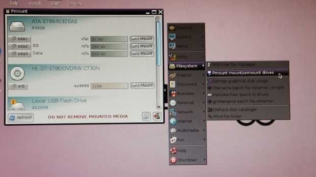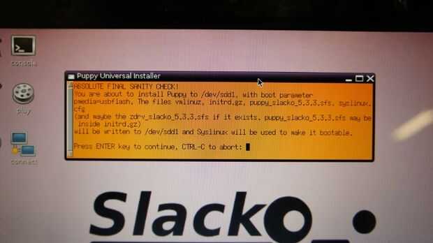 Su primera lección real en Linux va como esta, en tu memory stick. Mira la esquina inferior izquierda de la pantalla.