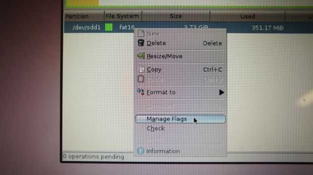 • Si desea realmente formatear el disco, con el botón derecho, elegir formato (seleccione la opción que apareció en la segunda columna de la opción "/ dev/sdd" y haga clic en aplicar a la parte superior. Siga las indicaciones hasta completar.