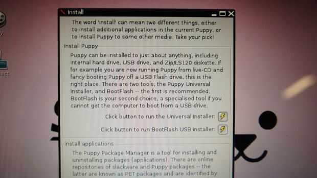 Ahora al instalar Puppy Linux en tu USB nuevo, arranque! Salida GParted y mirada a la parte superior izquierda del escritorio habrá un icono como un cuadro llamado "instalan". Haga clic en él.