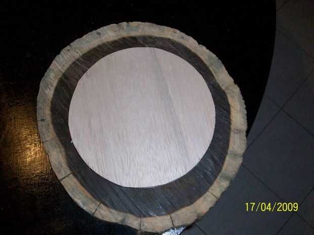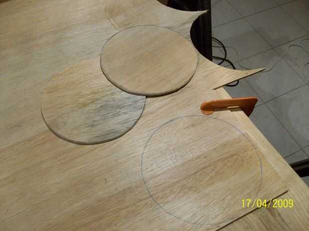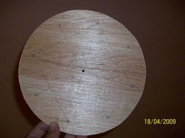 Tomar 2 o 3 pulgadas de esa medida y dibuja 3 círculos de ese tamaño en el tablero grueso de 5 mm.