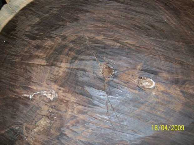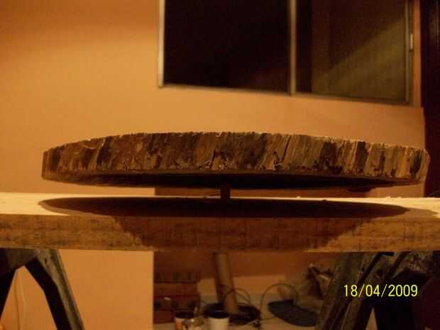 La recuperación de la pieza de madera "de alguna manera tienes de algún sitio" es básicamente un trozo de tronco de un árbol y hay muy pocas posibilidades de que es perfectamente redondo... Así que... a guardar la bandeja entregar equilibrado tiene que encontrar y marcar el centro de gravedad de ese trozo de madera.