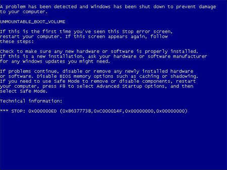 4) BSOD debido a la falta de boot.ini, instalación incorrecta o mal conductor