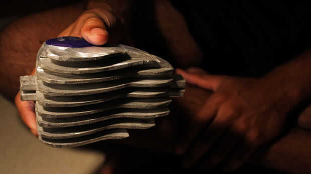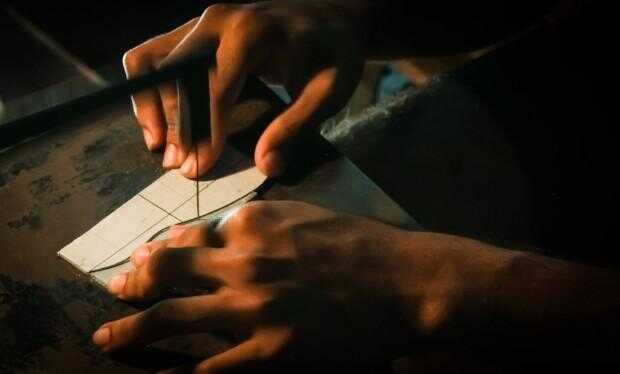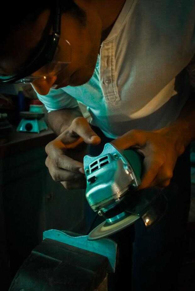 A continuación utiliza una sierras de marquetería para cortar los perfiles y había pulido de las piezas con una amoladora.