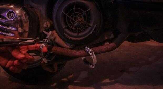 Corrimos y recomendamos que ejecute el cableado de tal manera que no viene en contacto con los gases de escape. Funcionó perfectamente en este scooter Vespa para quitar el recipiente de plástico de debajo del asiento, ejecutar el cableado a través de las entrañas del cuerpo de bicicletas y vuelva a colocar el recipiente. Enchufe en su banco de alimentación regulada de tensión y está listo para rodar! (hemos utilizado un banco de alimentación regulada de tensión, porque teníamos uno ahí, pero es bastante fácil de añadir su propio regulador de voltaje en los circuitos)
