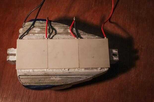 antes de aplicar una capa fina de pasta térmica en cada lado de la Seebeck de (recordemos que es el lado caliente y frío) y coloque el bloque de transferencia de calor en el lado caliente, y el disipador de calor del lado frío. Añadimos unas gotas de pegamento a los bordes para mantener el bloque en una sola pieza para el montaje.