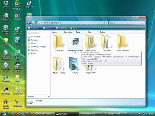 Guardar el archivo de un lugar se encuentra, ejecute el undelete_plus_setup.