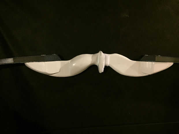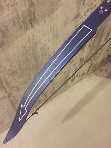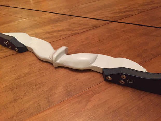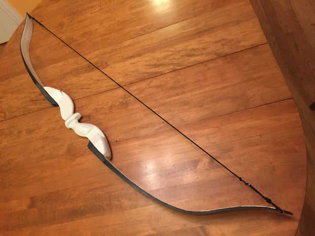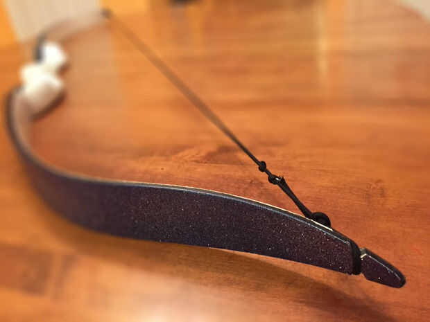 La cadena es un tipo de 550 paracord temporal (esperemos). La cadena se redujo a 52" y bowlines fueron atados para hacer los bucles en los extremos. El arco estirado el paracord, así que até un par de nudos en la cadena para acortar para arriba otra vez. No ideal, pero funciona por el momento.