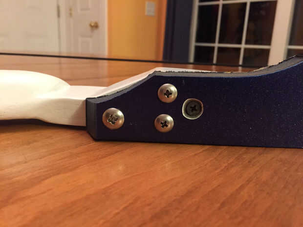 Se te nota que he añadido un tornillo drywall a los miembros a actuar casi como una espiga de posición. No sólo hace esto alinear la extremidad al centro, pero también es una tranquilidad extra para mantener a los miembros conectados a la canalización vertical cuando dibujo y soltando el arco.