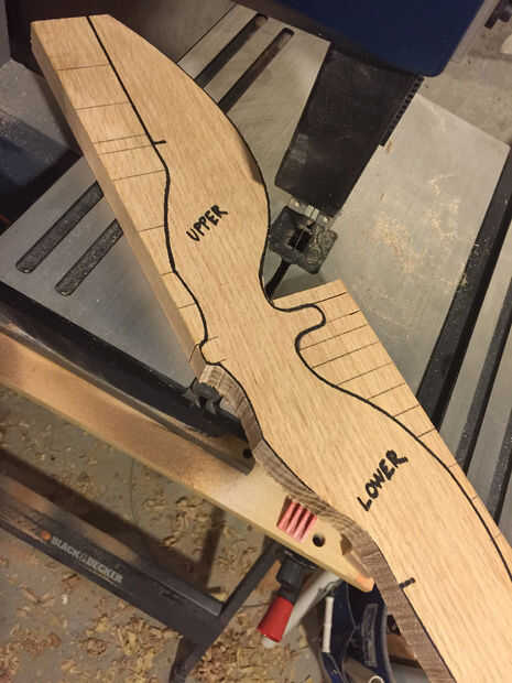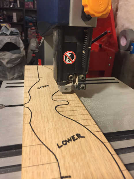 Para mí siempre es más fácil hacer de un dibujo y tiene una plantilla para trazar el diseño sobre la madera que improvisar o dibujar a mano alzada. Usé un programa de ilustración para hacer el diseño final de bocetos que tenía dibujado a mano. Lo imprimí a escala para tener una plantilla para trazar a la madera. Se celebró en su lugar con pequeños trozos de cinta. Una vez que el diseño se transfiere a la madera, marcar las líneas de los cortes de alivio. Los cortes de alivio permiten su sierra a trabajar menos quitando trozos pequeños de exceso de madera más rápido que una pieza grande a la vez.