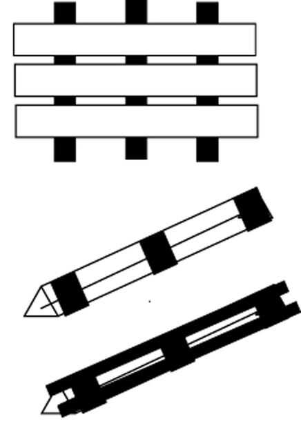 Cortar varios discos de madera de madera de 1/4 pulgada el diámetro interno del tubo. Encontrar el centro de los discos y cortar una forma del triángulo de cada uno traza del conjunto del espejo. Deslice los discos sobre el conjunto del espejo y uniformemente los espacio. Estos mantendrán los espejos en el centro del tubo. Podría omitir este paso y simplemente embalar alrededor de los espejos con las bolsas de plástico. Usé discos de madera y bolsas de plástico.