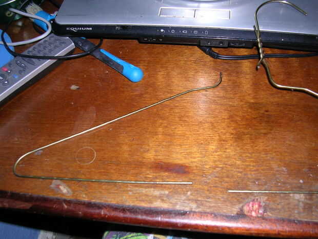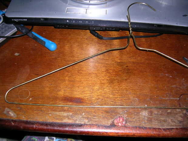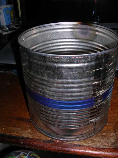 Ingredientes son simplemente una lata grande y una percha de alambre para hacer el mango.