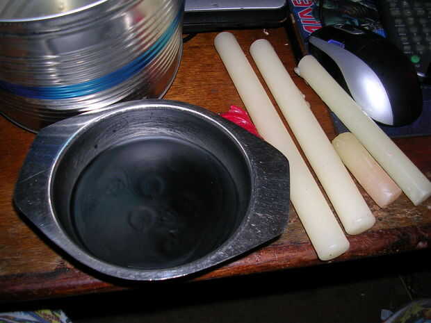 No quería usar una olla para derretir la cera a causa de la limpieza que sería necesaria después del trabajo. La fuente de calor sería la leña en mi galpón así que de nuevo que una buena cacerola estaba fuera de la cuestión.