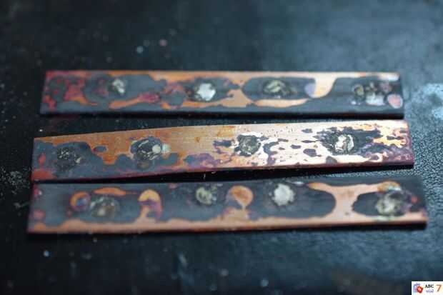 Después de limpiar el cobre, apilarlos y soldadura en la parte superior unos de otros.