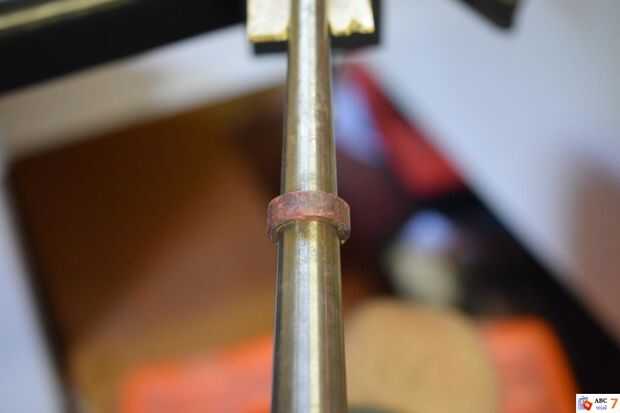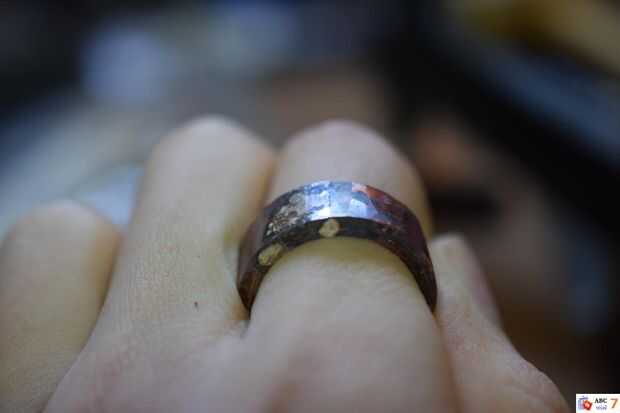 Si el anillo gira fuera demasiado pequeño como el mío lo hizo, puede ampliarse golpeando con un martillo de metal alrededor de la circunferencia hasta que el diámetro apropiado.
