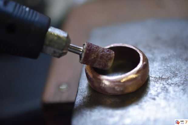 Utilizando una herramienta giratoria y un archivo de aguja, alrededor de los bordes del anillo para asegurarse de que es cómodo.