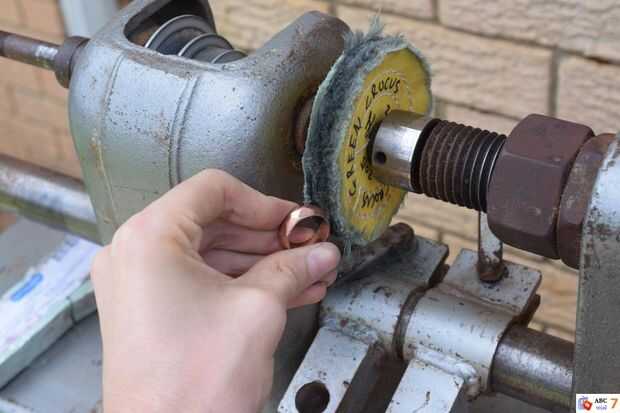 Usé los amantes de algodón de mi herramienta rotatoria por el interior y grandes aficionados fieltros Unidos a un torno para madera antiguo para el exterior del anillo.