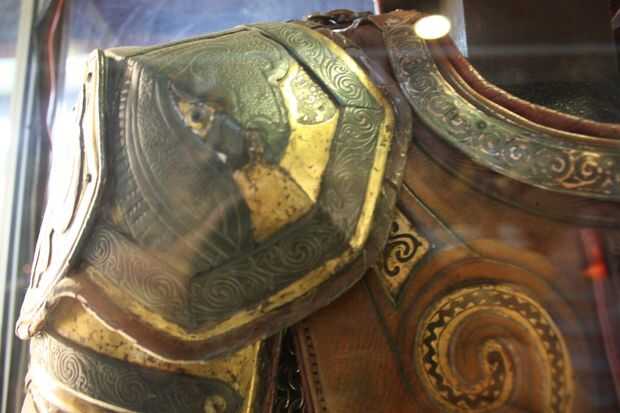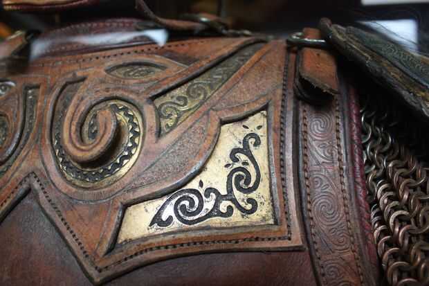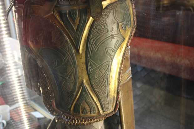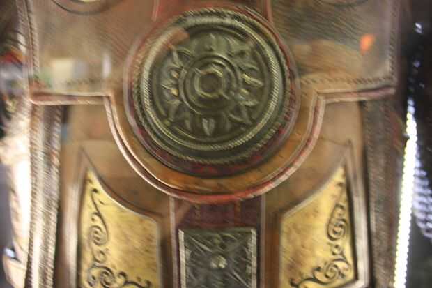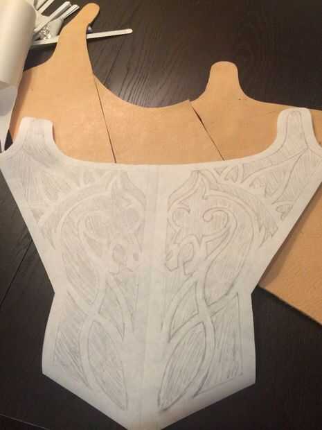 Comenzó con el patrón de Butterick B4254, tomaron mis medidas y alterado el patrón para me mejor que un patrón "off the shelf". Aquí están algunas fotos de la armadura de las películas, cuentan con costuras prominentes y repitiendo motivos de caballos y formas estilizadas del sol. Incorporé en mi diseño, dejando las líneas de enrejado sobre una media pulgada de ancho. Sombra en los espacios negativos, para que sea más fácil ver cómo aparecería el diseño acabado.