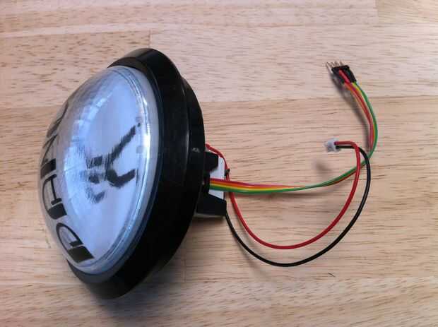 Me encanta botones. He estado presionando botones toda mi vida. Bailar es una gran salida de energía para mí, y quería un botón que comenzaría con una explosión. Estos botones grandes de Sparkfun son grandes y tienen una satisfacción haga clic cuando usted em tortazo. Incluyen un LED conectado a 12V que va cambiar y un interruptor eléctrico con normalmente abierto (NO) y Normally-Closed (NC). Reemplacé el stock LED con mi propio LED RGB con un enchufe, cheque las fotos para ver cómo. El plan es usar el LED como un mecanismo de retroalimentación. Inicialmente el color y secuencias de iluminación será capaces de mostrar cuando el botón está en modo de baile (con alguna vitalidad). Finalmente mi objetivo es integrar varios botones en www.isanyonedancing.com con algunas de las características más sociales, entonces la luz cuando otras personas están en modo de baile y tal vez le notifique cuando otros piensan que se debe bailar.