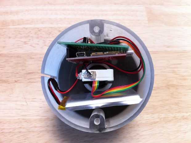Ahora que todos los componentes eléctricos son elegidos, puse cosas en varias configuraciones (sólo en una mesa) para calcular la dotación de embalaje más pequeño, más conveniente que podía alcanzar. Luego CAD que todo por lo que se puede diseñar un 3D impreso caja alrededor de él. Diseñé en características a la caja para montaje fácil: primero se insertan las tuercas hexagonales en la parte superior, el botón se conecta luego con el anillo de montaje común, a continuación electrónica insertado y finalmente cerró con 8-32 tornillos de ferretería local.